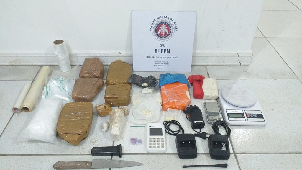 Após a diligência, os policiais encontraram, na posse dos suspeitos, os seguintes materiais: